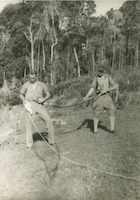 Alan Groom and his brother John with a carpet python, Binna Burra, Queensland.