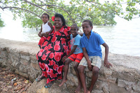 7 digital photographs showing: one of the first aluminium dinghies used to travel between Sabai and what is now Papua New Guinea; Suzannah Akiba, her house and garden and the view from her house; and Suzannah and Adrian Akiba.