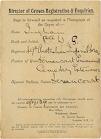 This series contains miscellaneous items including newspaper clippings, sympathy cards, catalogues for ordering wreaths, and railway tickets, relating to the service of brothers William and Benjamin Ingham during the First World War.
