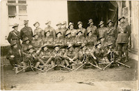 Photographic postcard showing a group portrait of a Machine Gun Battalion, Lieutenant Edgar Towner standing far right. The group are most likely to be men of the 7th Brigade Machine Gun Company.