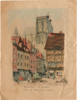 Greeting card featuring a coloured sketch of Abbeville, France, from Edgar Towner.