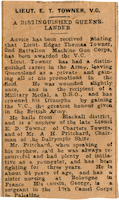 Unsourced newspaper clipping advising Lieutenant Edgar Towner had been awarded the Victoria Cross.