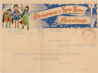 Christmas card sent by Charles Fry to Beryl Smith, informing her that he is going to Greece.