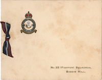 Christmas card issued by No. 32 (Fighter) Squadron, Biggin Hill and signed by Charles Fry.