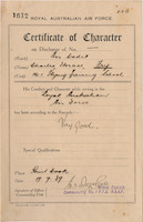 Certificate of Character issued by the Royal Australian Air Force to Air Cadet Charles Horace Fry.