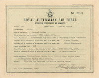 Royal Australian Air Force Officer's Certificate of Service issued to Charles Horace Fry.