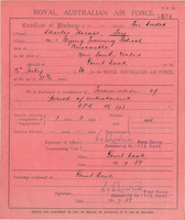 Certificate of discharge issued to Air Cadet Charles Fry by the Royal Australian Air Force.