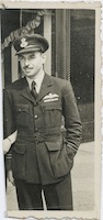 Photograph of Charles Fry in uniform. The caption reads: 'Fighter pilot, POW for 4 1/2 years.'