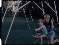 Footage shows children playing in back yard. Very short film.