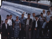 Footage shows members of families of Leander A.S.C. travelling to Mount Isa for a swim meet. Includes footage of gathering at the airport, boarding the plane, stopping at Longreach Airport, views from the plane, landing at Mt Isa, swimming events at Mt Isa Swimming Pool at Kruttschnitt Park, Mt Isa street scenes and views over town, the flight back to Brisbane via Cloncurry, Richmond, Proserpine, Mackay, Rockhampton and other stops.