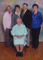 Four large format colour prints of Florence Bjelke-Peterson with members of her family, taken at a birthday celebration. Several have duplicate copies, the sizes range from 300 x 420 to 420 x 590 mm.