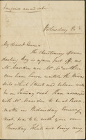 John Oxley writes from his residence in Sydney, to his wife Emma at 'Kirkham' near Camden. He regrets that he will be unable to attend a funeral related to the Howe family, who occupy the neighbouring property, and asks that Emma visit Mary Howe; he hopes to be accompanied on his next visit by her brother James and a 'sister' most likely his bride Jane. James Norton (1795 -1862) was one of colonies earliest practicing solicitors.