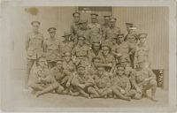 3rd row: Corp. [Carlton Wallace Gladstone Stewart] Lindsay, Pte. [Hilton Noble] Sawyer, [Arthur James] Hurmann, [Charles Ernest] Hows, [Percy Frederick] Staples, Thompson, [Willis Grey Mayne] Main, Sgt. [Eric Douglas] Bennett ;