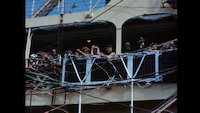 - brief footage of people on a boat then of various scenes (people, a ball game, band, crowds) in a foreign country.