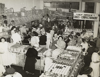 - opening day at the Morningside Brisbane Cash and Carry store on 26 September 1957 with footage of: crowds outside, the Brisbane Cash and Carry ute with a band in the tray; crowds inside shopping.