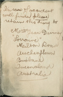 The soldier wrote to Miss Deviney of "Gladsdale", Helidon, Queensland, and later posted two of the diaries to her. The collection also includes the large envelope which contained the diaries.