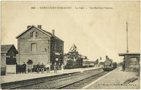 Postcard from former British soldier, J.W. Hunt in England to the Deviney family in Queensland indicating the vicinity in which George Deviney fell and was buried in France. The postcard has a view of the railway station at Mericourt Ribemont.