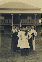 - The seven Deviney sisters posing in front of their residence "Gladsdale" at Helidon, Queensland