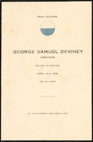 Memorial card for George Samuel Deviney, including the colours for the 52nd Battalion.