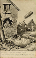 The postcard featuring a military cartoon entitled "Situation Shortly Vacant" and is part of the series "Bystanders", Fragments from France, Series 4. Illustrated by Bruce Bairnsfather.