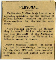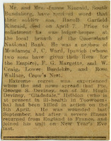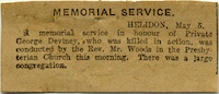 Unsourced newspaper clipping regarding the memoriam service held in honour of George Samuel Deviney in Helidon, on 8 May 1918.
