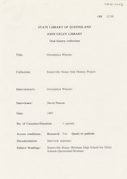 Interview with Gwendolyn Wheeler who discusses her memories of the co-principals of those early years - Miss Harker and Miss Jarrelt. Miss Jarrelt's main responsibility was to the boarders and Miss Harker's to the academic side of the school. Other memories she related were English classes with Miss Ruth George, trips to the snow country (but said there were very few other school outings), visits by the Ministers from the two churches who gave religious instruction, assemblies conducted by Miss Harker, and school prizes (books covered in either blue or red leather with the school crest embossed on the cover). The interviewer is David Hanson.