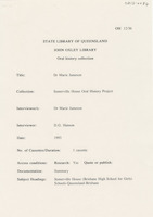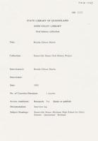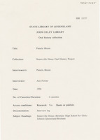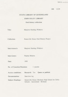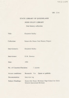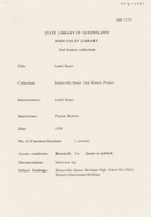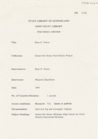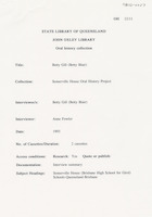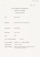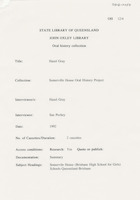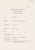 During the first interview (9 December 1992), Hazel discusses her early life in Bundaberg and attending Somerville House including the school uniform, a typical school day, sleeping arrangements, after school activities and adjusting to being a boarder. She also discusses graduating with a science degree from the University of Queensland, her first teaching job at Somerville House, becoming a boarding mistress and relocating to Stanthorpe during the Second World War.
