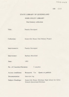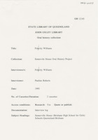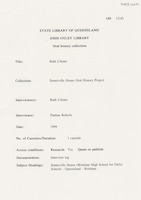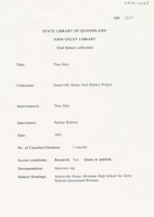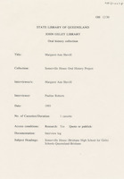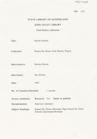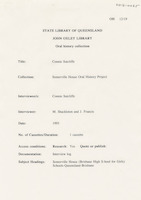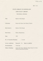 Interview with Beatrice McCullough who discusses her life in Brisbane during the 1920s with particular reference to her connection and that of her family with Somerville House. The interviewer is Shirley Shepherdson.