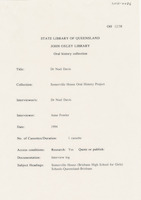 Log of the interview with Dr Noel Davis.