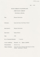 Log of the interview with Margaret Rackemann.