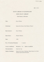 Interview with Erin O'Brien who discusses uniforms, netball, debate team, teachers, excursions, assemblies, punishments, the school chapel and her future. The interviewer is Pauline Roberts.