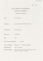 During the first interview (24 February 1993), Nancy discusses the school uniform, subjects, teachers, her parents, her teaching career and education and provides a description of the Stanthorpe school.