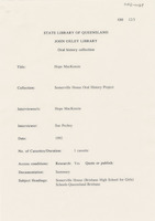 Interview with Hope MacKenzie who discusses attending Sommerville House. The interviewer is Sue Pechey.