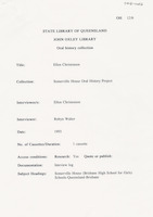 Interview with Ellen Christensen who discusses years at Somerville including staff, subject choices, speech night, new uniforms, boarders, meals, books, the library and sport. The interviewer is Robyn Walter.