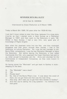 Oral history with Bill Klotz, an Australian commando (special unit Far Eastern Liason Office - F.E.L.O) in the Second World War. The oral history covers: training at Wilsons Promontory in Victoria; being stationed in Townsville, Moresby, Cape India Dare, Kalinga and the Jungle Warfare Training School at Canungra; fighting the Japanese in Kiapit; joining and serving with the Far East Liason Office in Brisbane; Kirkston house in Windsor which served as F.E.L.O.'s original headquarters; his wife Joyce and the Papua New Guinean locals.